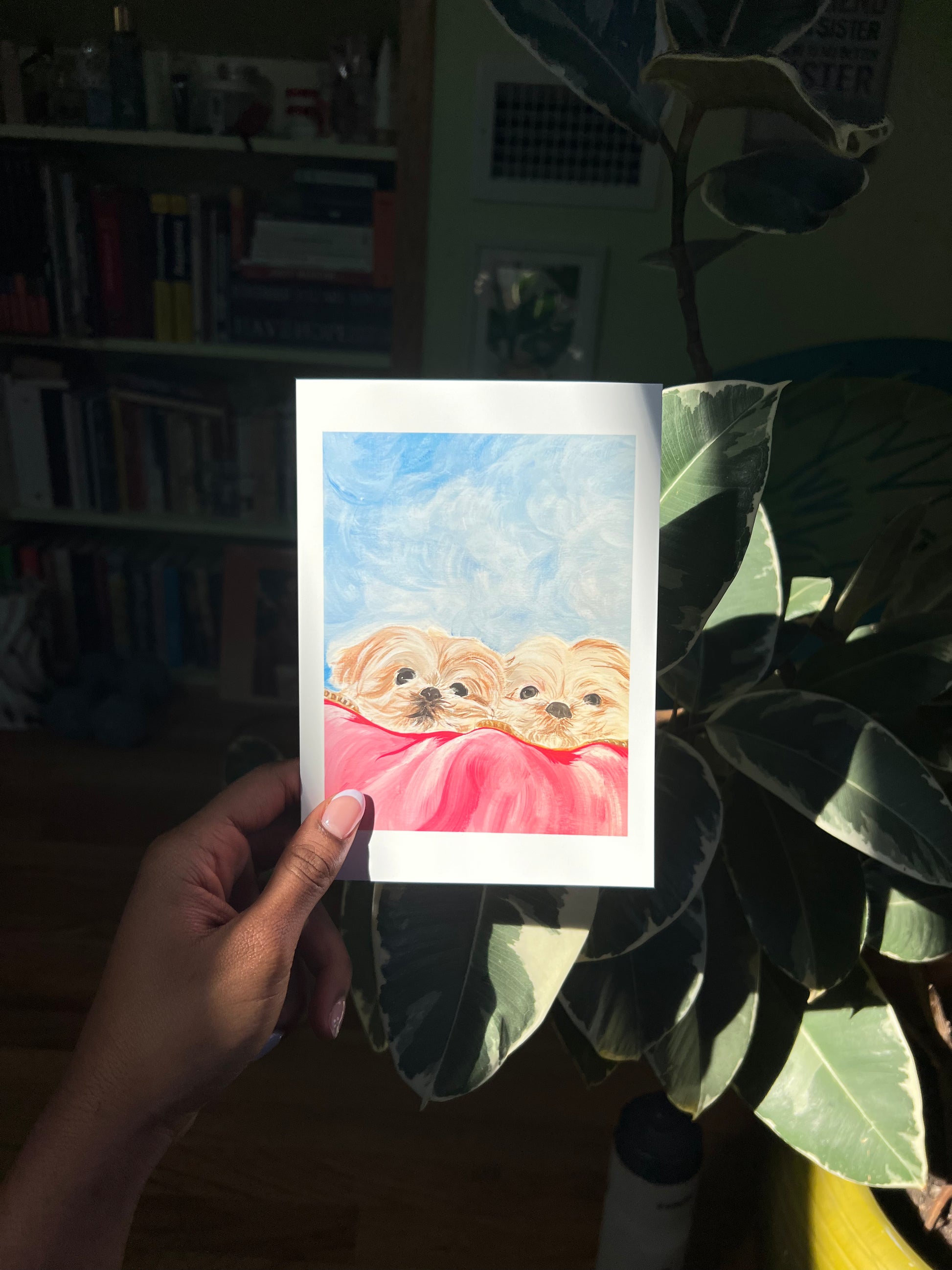 An acrylic painting of my dogs, Hope and Sora.