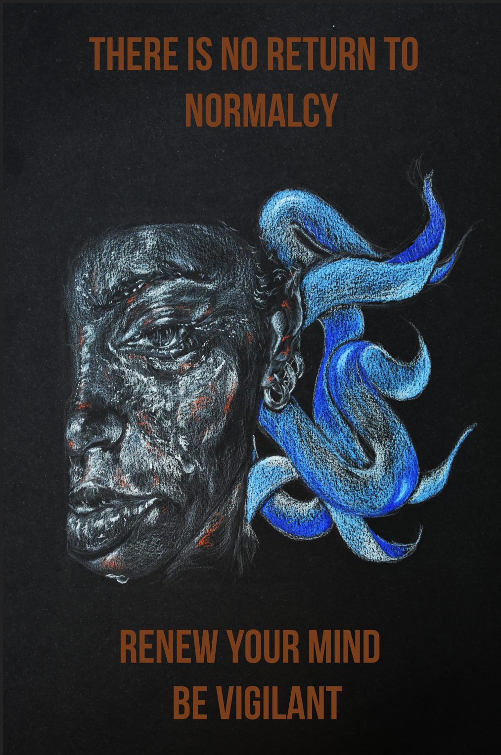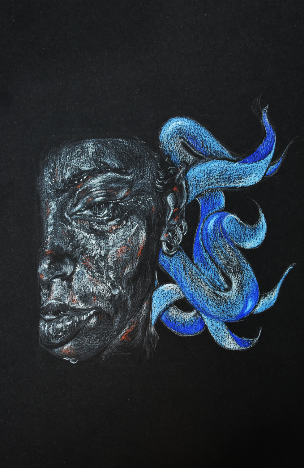 A drawing done with white charcoal and colored pencil. Click here to see the artist statement!